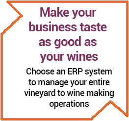 Apply the same principles to your business as you do with winemaking. Infuse balance, consistency and finesse to your business. TSG expertise helps you take absolute control (vineyard to wine production), with a fine blend of business insight and best-fit ERP technology, to deliver better yield and higher returns. Choose TSG Sage Winery ERP Solution.